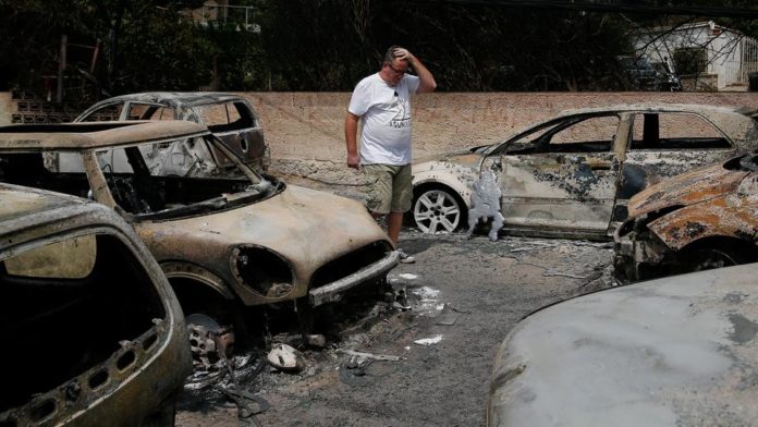 Ανατολική Αττική, μέρα τρίτη μετά τον όλεθρο. Η χώρα από το μεσημέρι της Τρίτης σε τριήμερο πένθος που κηρήχθηκε από τον πρωθυπουργό. Με δάκρυα στα μάτια και αγωνία για τον εντοπισμό αγνοουμένων συνεχίζονται οι έρευνες στην περιοχή που χτυπήθηκε από την πυρκαγιά. Ο παραθεριστικός οικισμός Μάτι, στη Ραφήνα έχει μετατραπεί σε μια μαύρη πληγή στον χάρτη της Αττικής.